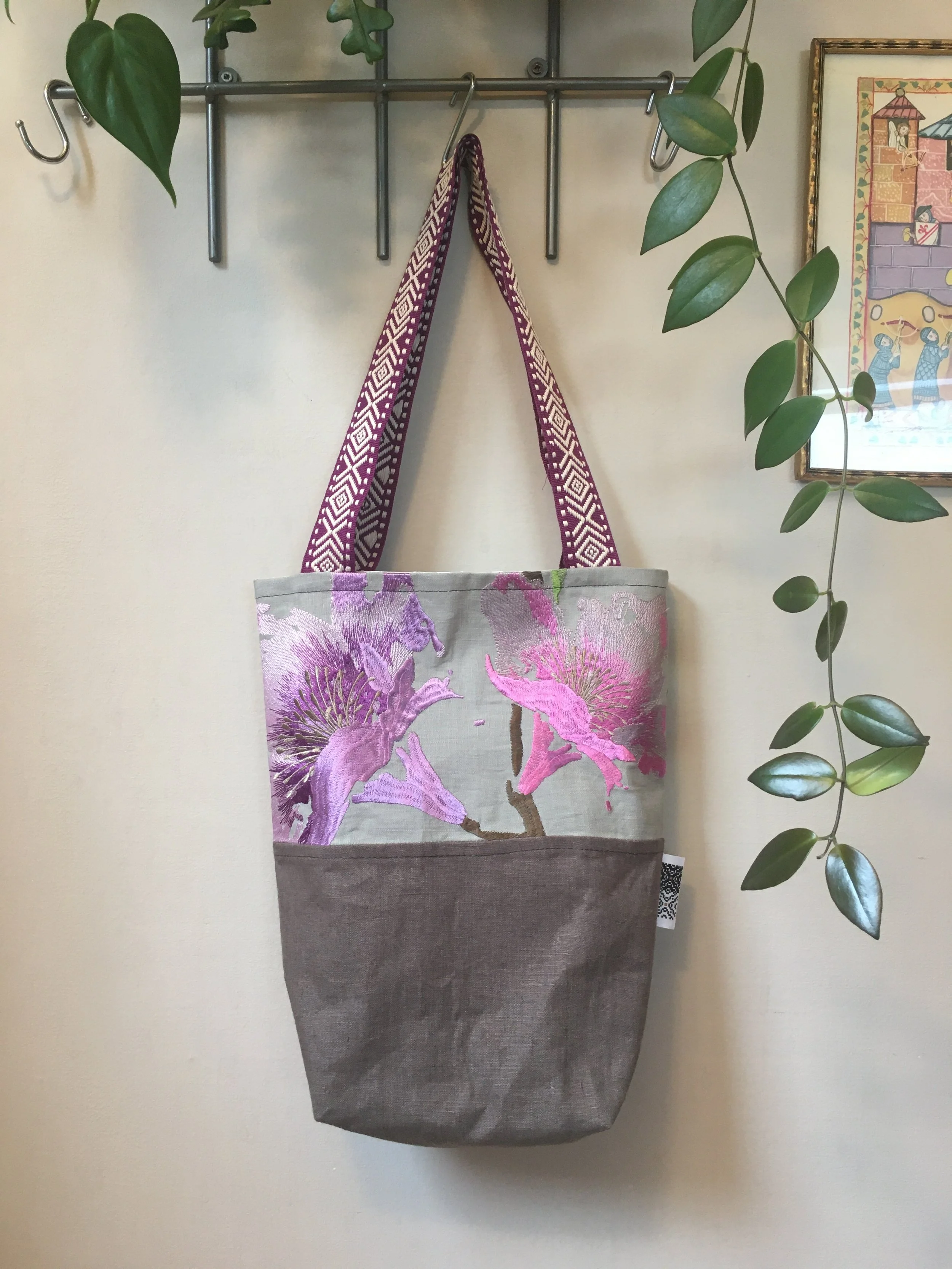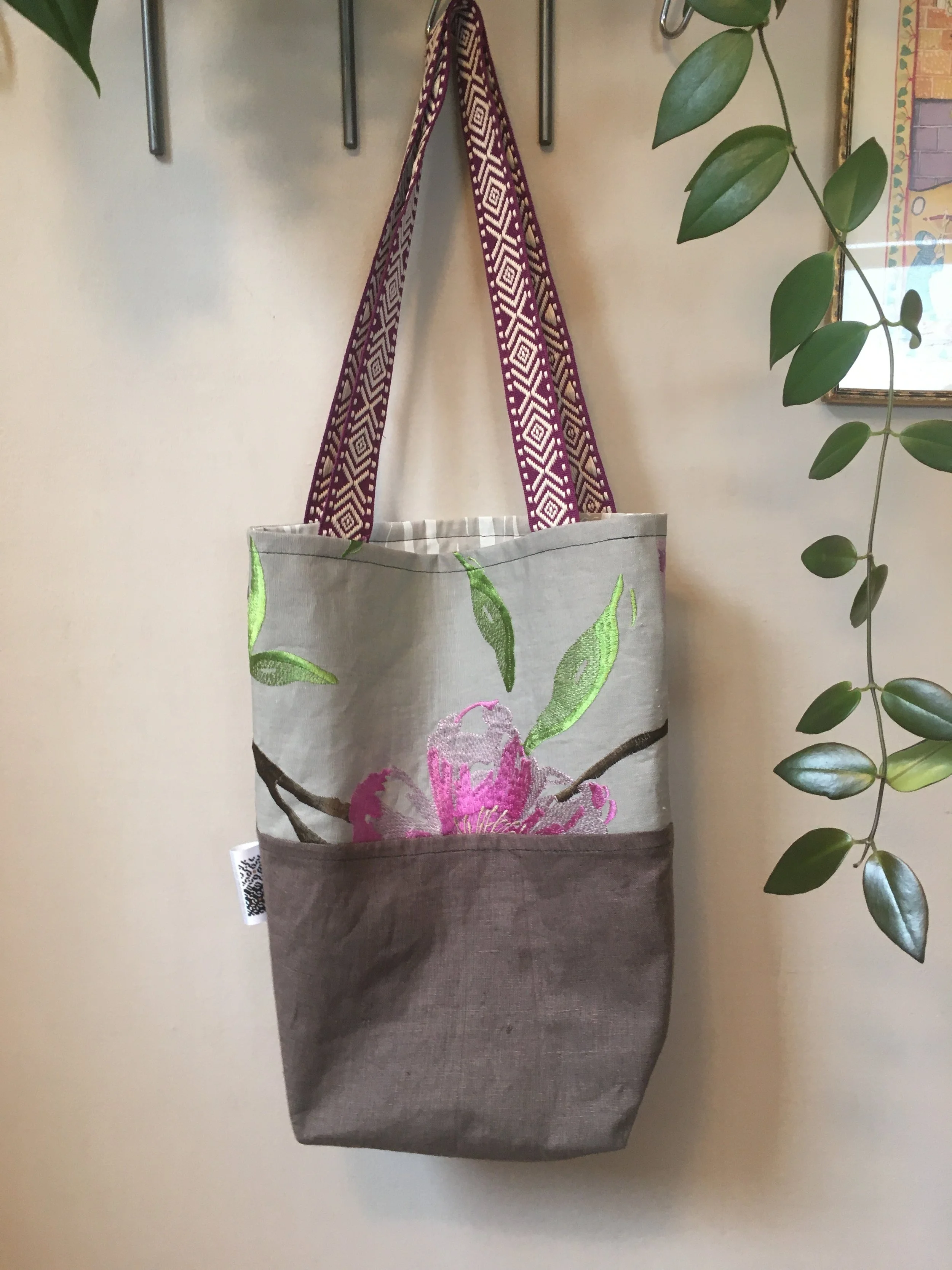 PATCHWORK TOTE OR SHOPPING BAG | upcycled upholstery fabric with embroidery