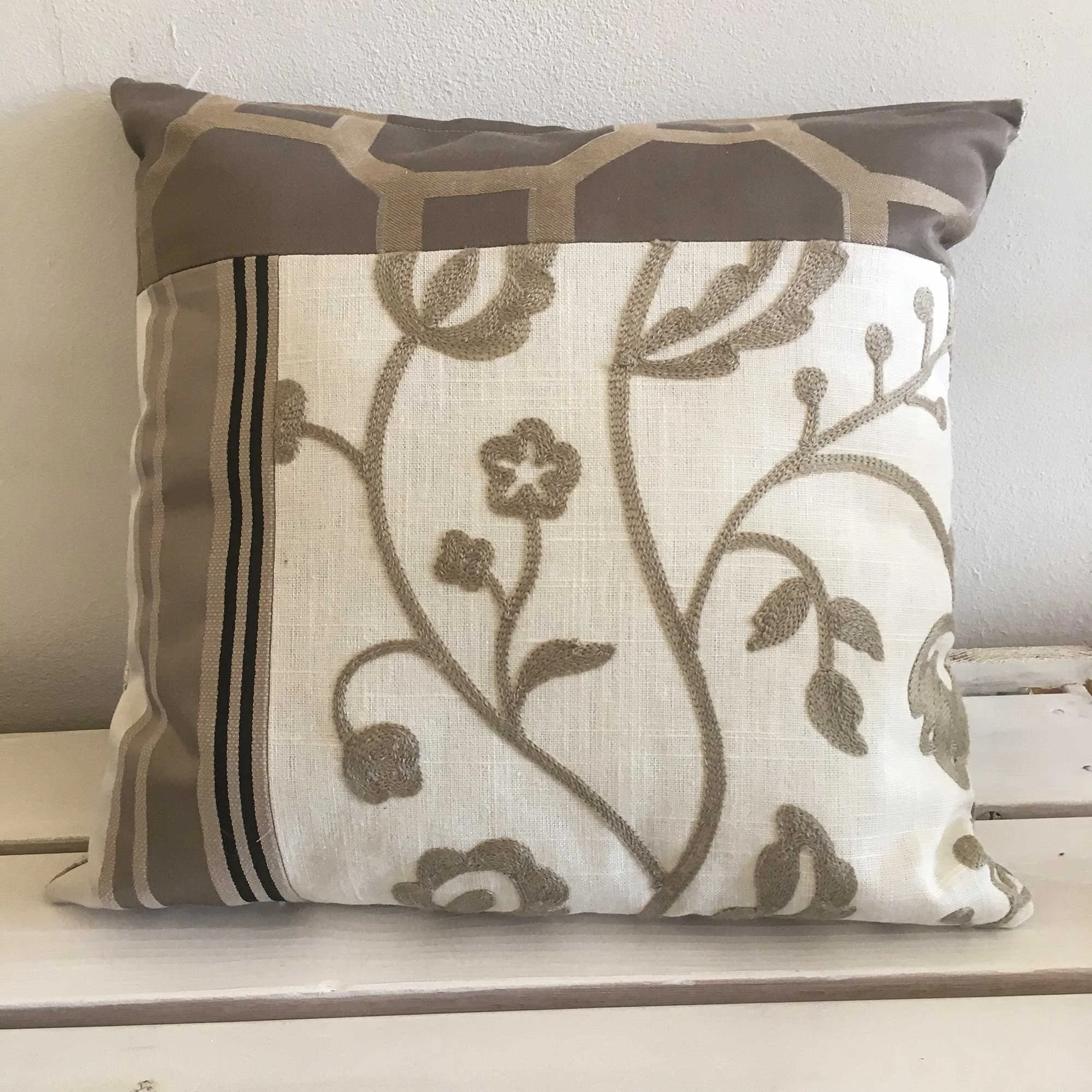 Patchwork Cushion Cover with Zipper in Upcycled Materials